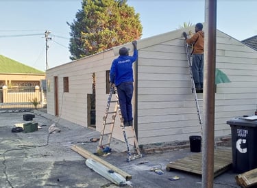 Les travaux consistent à isoler (toit et sols), aménager l'intérieur (rangements, mobilier éducatif), et l'extérieur (portiques, jeux), installer des sanitaires et assurer l'approvisionnement en eau (citernes de récupération d'eau de pluie).