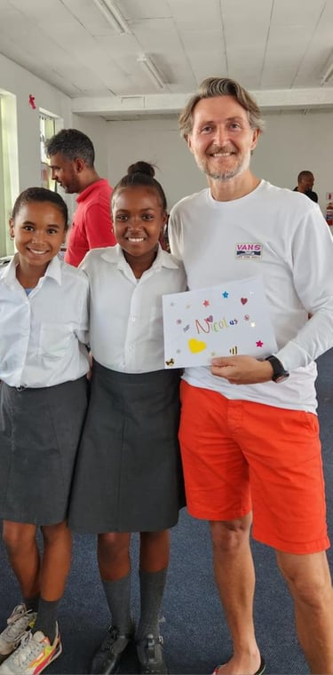 "La rencontre avec l'Afrique du Sud en 2013 est le fruit du hasard à l'occasion d'un voyage découverte auprès d'associations locales. Mais elle a été déterminante car c'est à ce moment et à cet endroit que s'est structurée notre démarche. Nous y sommes attachés désormais, par le cœur et par l'envie de faire bouger les choses, à notre échelle, pour les enfants des townships."